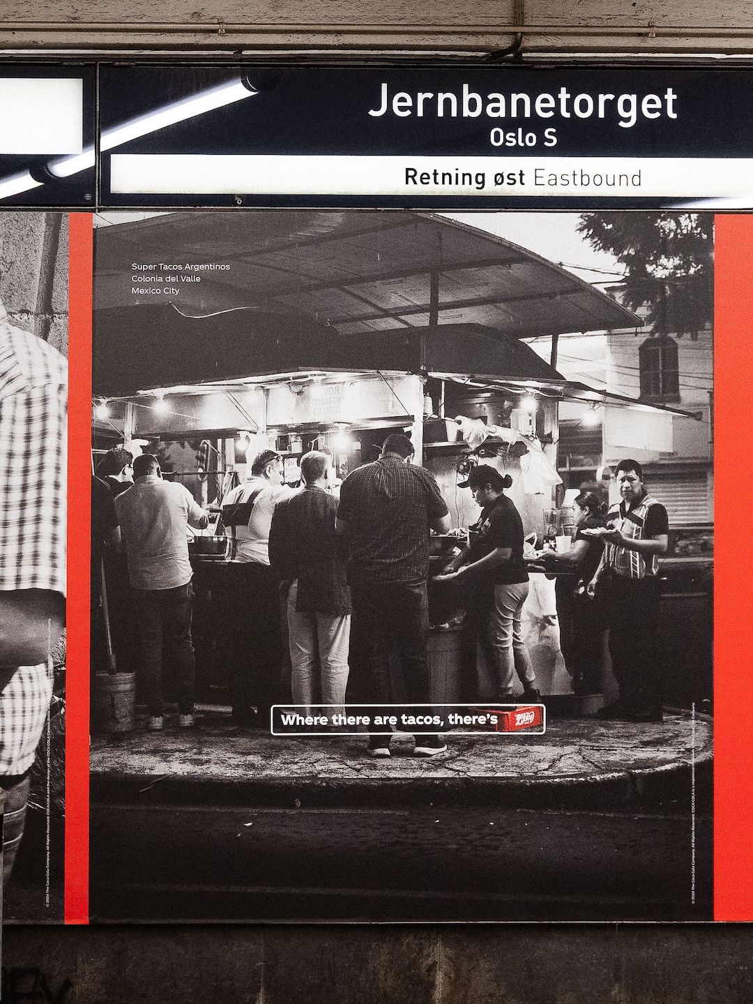 Noruega es el primer país en donde se ha instalado esta campaña de publicidad exterior. Las fotos han sido colocadas en la estación central del metro de Oslo, otros espacios públicos y calles principales. Llevando a los noruegos una ventana al mundo de las taquerías mexicanas. La campaña muestra cómo la relación entre los tacos y Coca-Cola es algo que trasciende fronteras, uniendo culturas a través de la comida y la bebida.