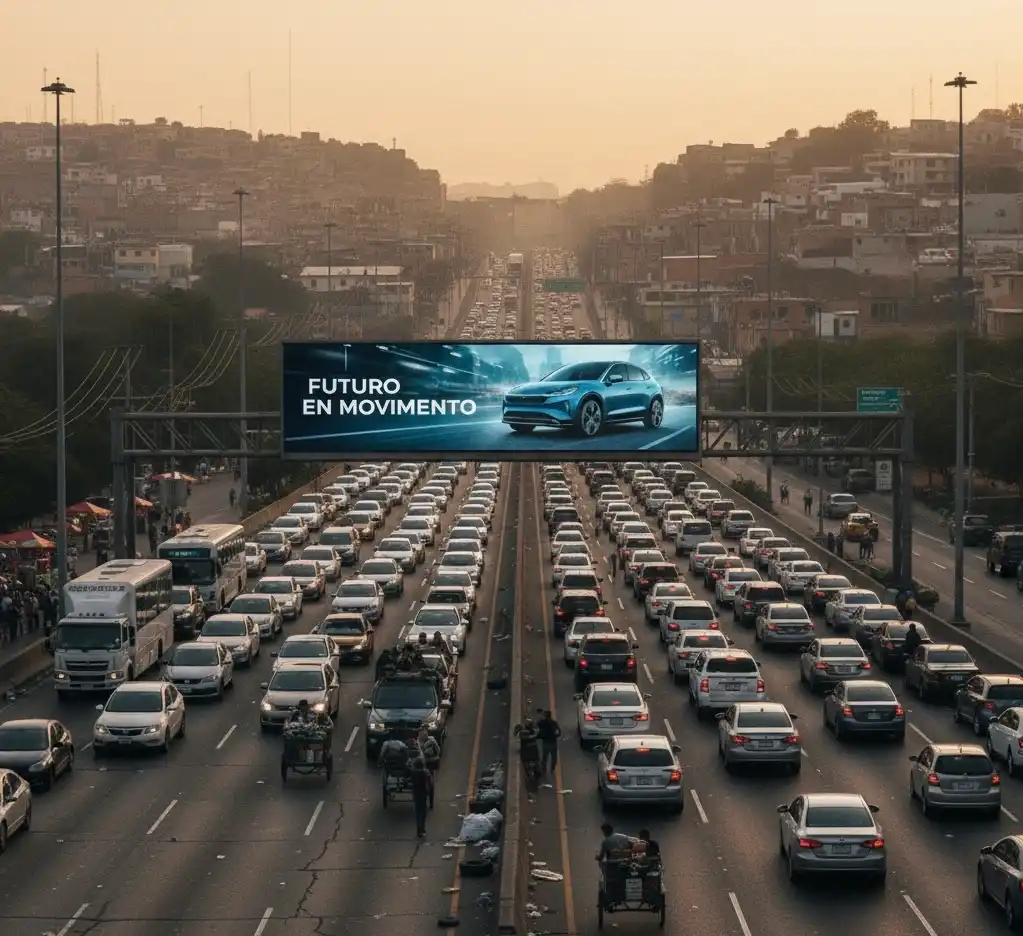 Durante esos minutos de inmovilidad, el anuncio deja de ser un simple elemento visual y se transforma en parte del paisaje emocional del conductor: puede ser una compañía silenciosa, una distracción momentánea o simplemente un punto de referencia dentro del caos en la carretera.