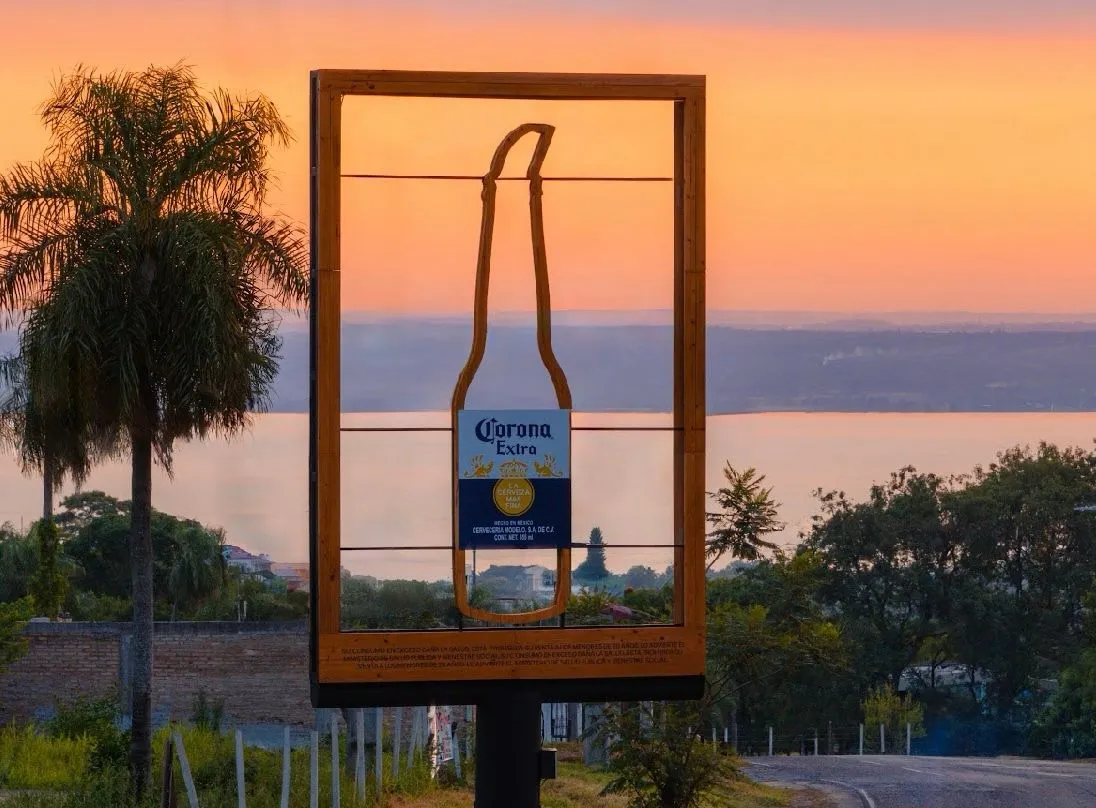 En el corazón del verano de San Bernardino, Paraguay, Corona encontró la manera perfecta de fusionar su esencia con la naturaleza. La marca de cerveza lanzó una campaña de publicidad exterior única: anuncios que no necesitan tinta ni impresión, solo el atardecer como fondo.