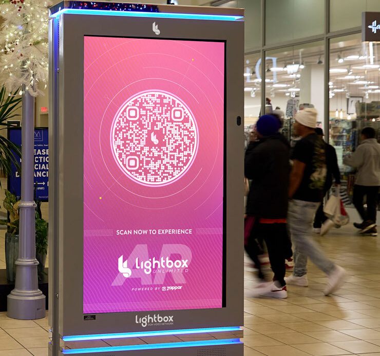 Tal es el caso de Lightbox, una empresa líder en video digital para exteriores, que lanzó un producto AR para transformar sus pantallas en una plataforma de realidad aumentada; La forma en que funcionan las pantallas son a través de códigos QR, en el momento de ser escaneados, el producto da vida a los mensajes de marca en dispositivos digitales y así expandir la narración.