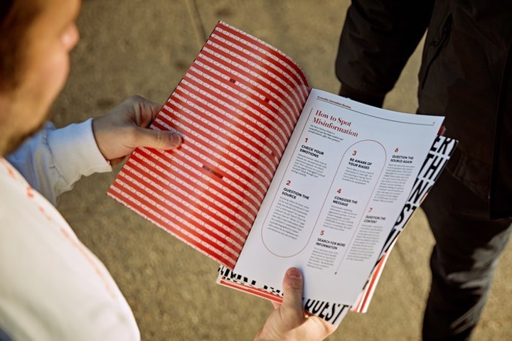 El giro inesperado se da cuando en cada publicación contenía un inserto que explicaba como detectar noticias falsas, lo que llevó a las personas a cuestionarse lo que estaban leyendo.