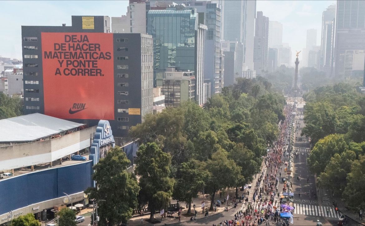 La publicidad exterior de Nike en el Maratón de la Ciudad de México.