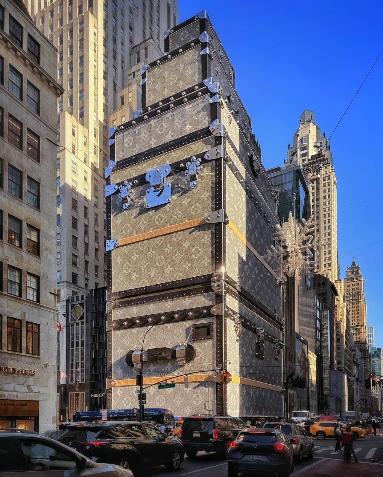Louis Vuitton ha elevado la publicidad exterior a un nivel artístico. En Nueva York, la marca cubrió su tienda en la Quinta Avenida con una gigantesca fachada que recreaba sus icónicas maletas. Esta acción, que originalmente buscaba cubrir la remodelación de la tienda, se convirtió en una obra visual que dejó una fuerte impresión en los transeúntes. Louis Vuitton demuestra cómo la creatividad puede transformar un simple anuncio en una experiencia visual única, manteniendo siempre su estatus de lujo y sorprendiendo a su audiencia con su enfoque innovador.